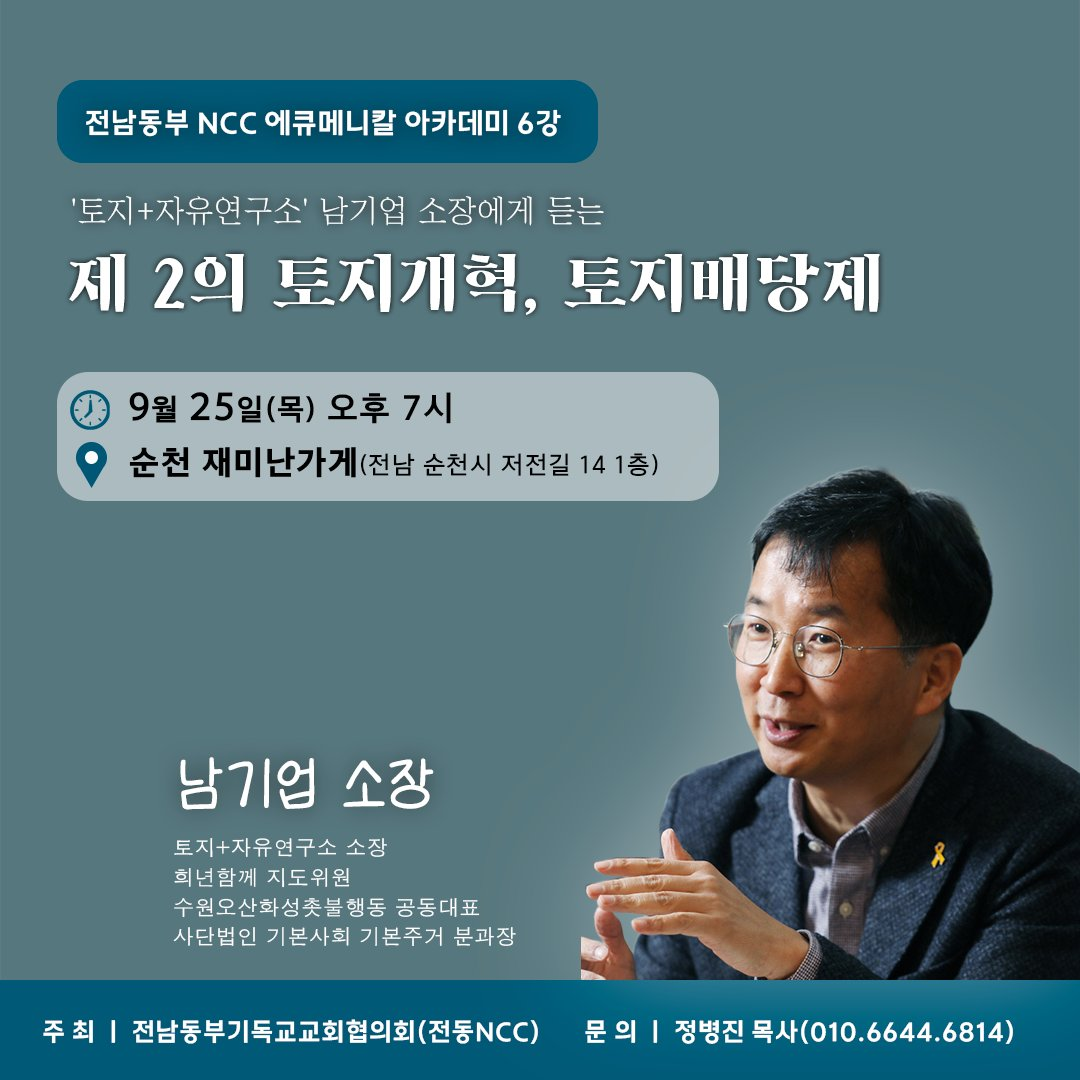 [강연] 제2의 토지개혁, 토지배당제 (9/25. 순천) 2025년 09월 23일 📁 대외활동 조회수 : 1,376 ← 이전 글 [발제] 땅은 누구의 것인가, 토지정의 (9/24. 서울) 📋 목록보기 대외활동