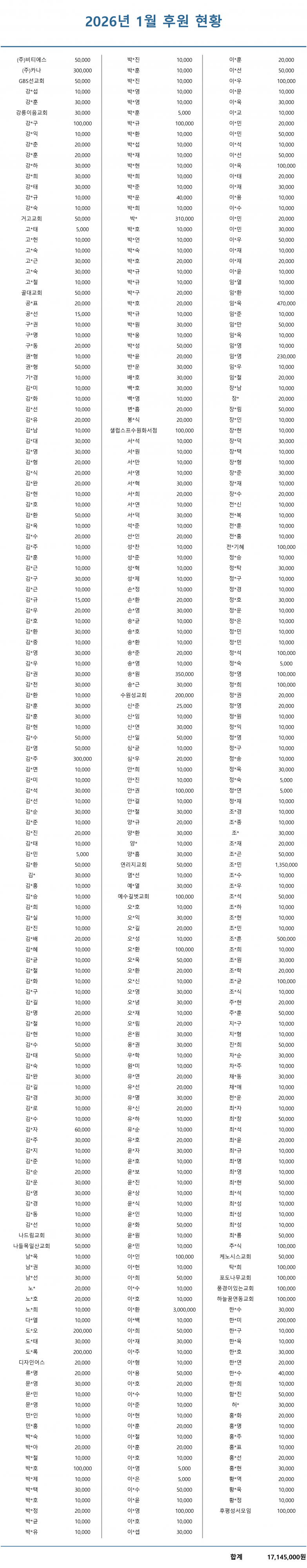 2026년 1월 후원 현황입니다.